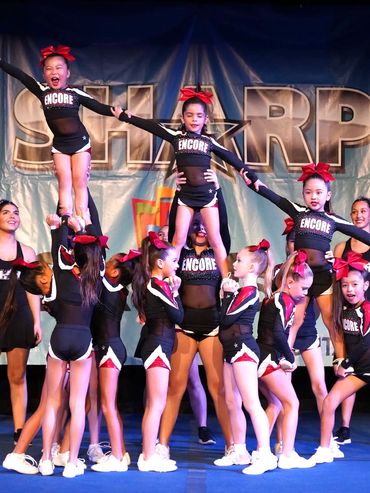 Our vision for our All-Star team is to create an environment where students can achieve personal growth through goal setting, the benefits of good sportsmanship and learn the importance of working together as one team. Encore Elite’s studio culture is centered around positivity and building self-confidence. Our All-Star team gives every student the opportunity to expand their performance experience and take their cheer / pom skills to the competition mat!