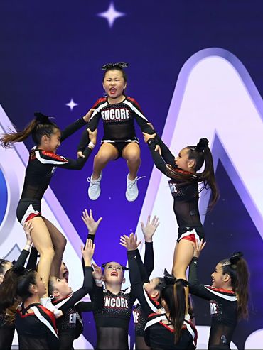 Our vision for our All-Star team is to create an environment where students can achieve personal growth through goal setting, the benefits of good sportsmanship and learn the importance of working together as one team. Encore Elite’s studio culture is centered around positivity and building self-confidence. Our All-Star team gives every student the opportunity to expand their performance experience and take their cheer / pom skills to the competition mat!
